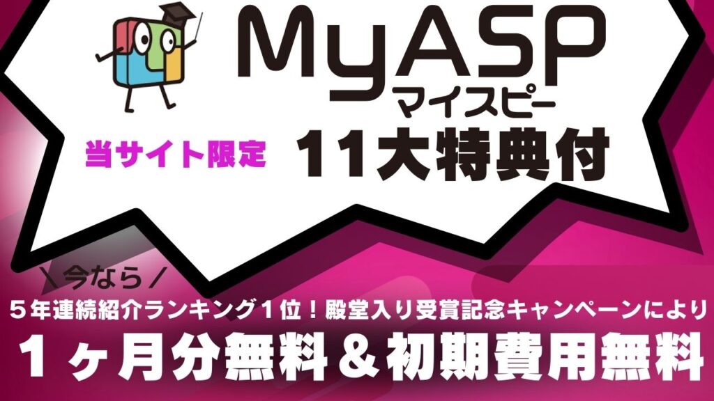 MyASP(マイスピー)のお申し込み|当サイト限定で1ヶ月分無料・初期費用無料・11大特典付き!